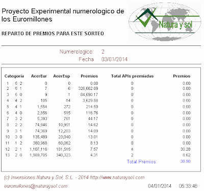 ** Próximo Sorteo: 7 de enero de 2014.